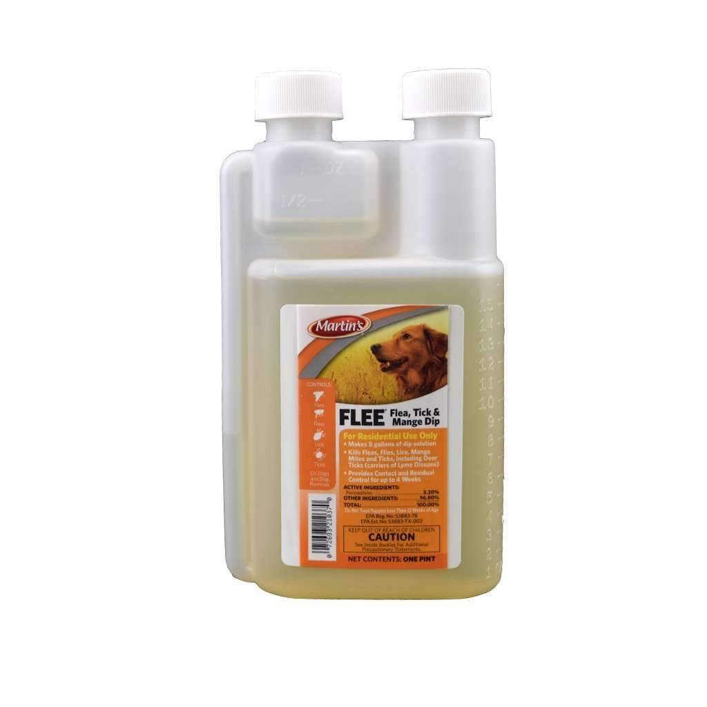 Flea, tick, and mange dip. Long-lasting insecticide for use on dogs and puppies over 4 months old. Controls fleas for up to 28 days. Kills fleas, flies, lice, mange mites, and ticks. 1 pint yields 8 gallons of dip. Active ingredient: 3.20% Permethrin.