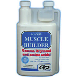 Formulated for horses in training, competition, show or sale and also during the early years of development. Su-Per Muscle Builder is designed to maximize the horse's ability to build and maintain lean muscle while decreasing overall body fat. Our exclusive formula combines the all natural, drug free, muscle building properties of gamma oryzanol with specific bio-available amino acids to produce results like no other muscle product on the market today. Administer 1 ounce daily (128 servings per container) as a top dressing to regular ration.