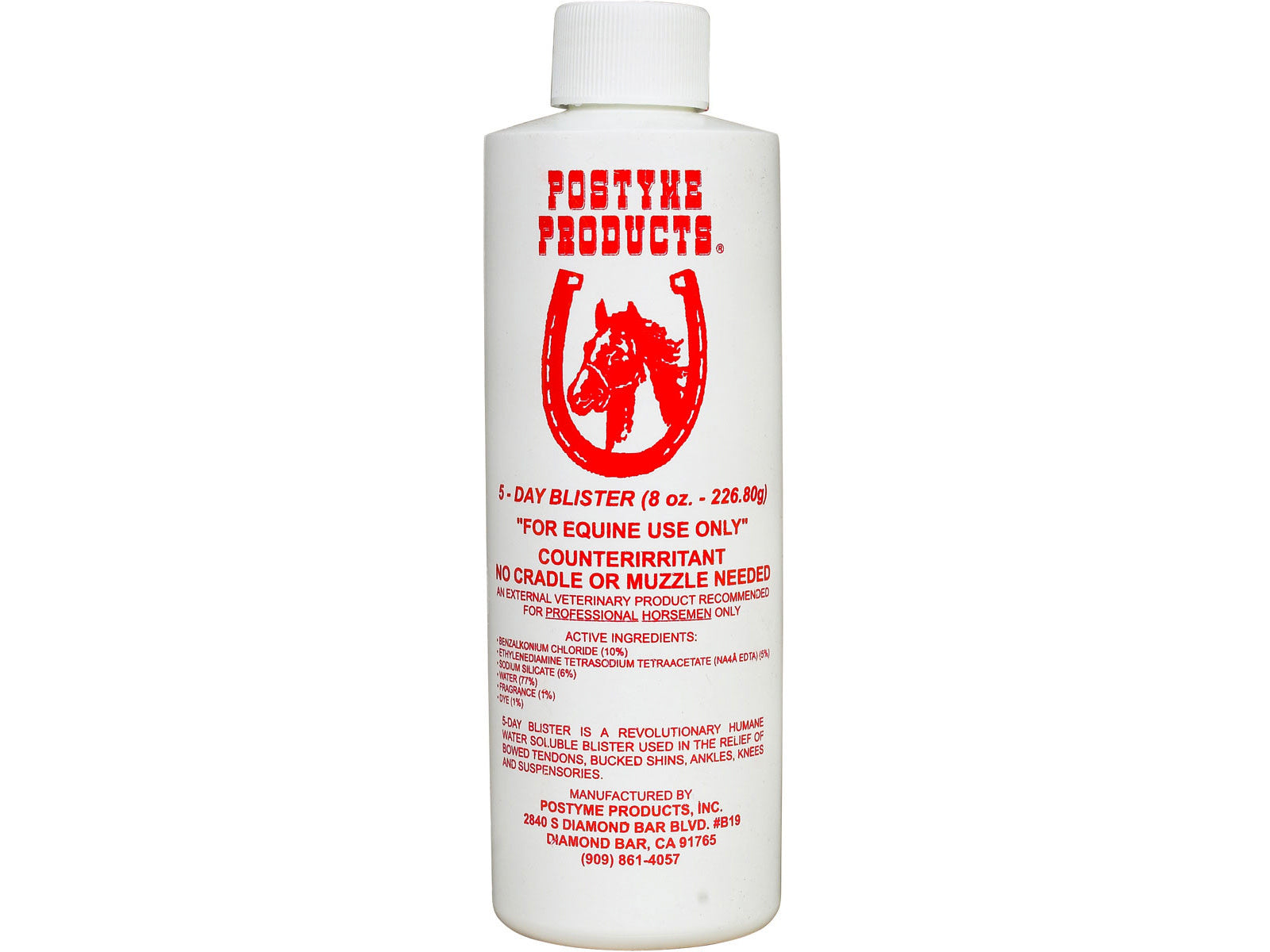 Postyme 5-Day Blister is a revolutionary, humane, water soluble blister used in the relief of bowed tendons, bucked shins, ankles, knees and suspensories.